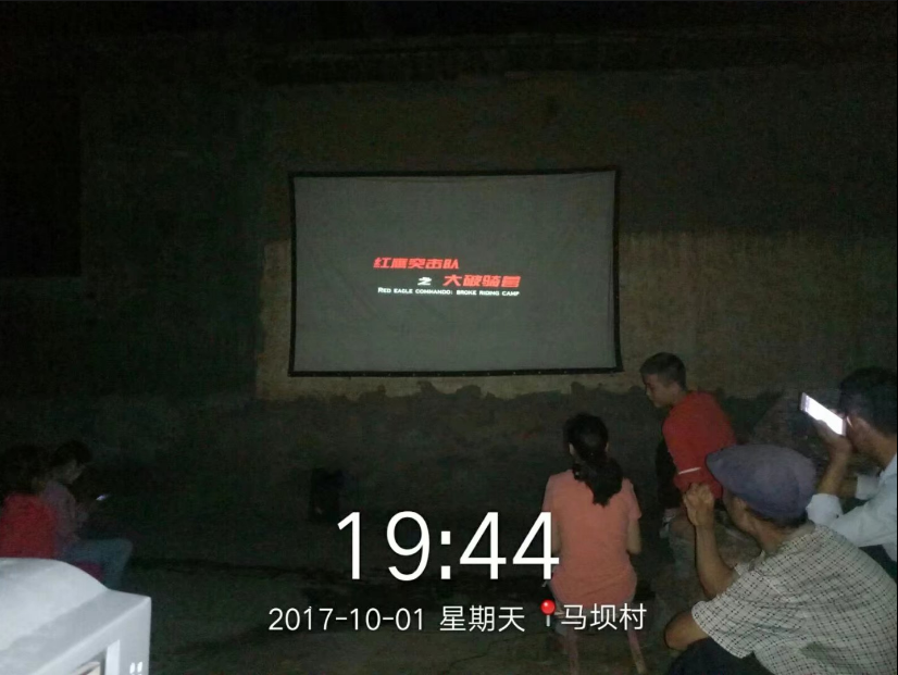 2017年10月1日是偉大祖國成立"68"周年的喜慶日子,在這個舉國歡慶的日子里,甘肅飛天農(nóng)村數(shù)字電影院線第六工作站隴南市武都區(qū)漢王鎮(zhèn)放映員王將軍,在隴南市武都區(qū)漢王鎮(zhèn)馬家壩村開展"迎國慶、慶中秋"公益電影專場放映活動。