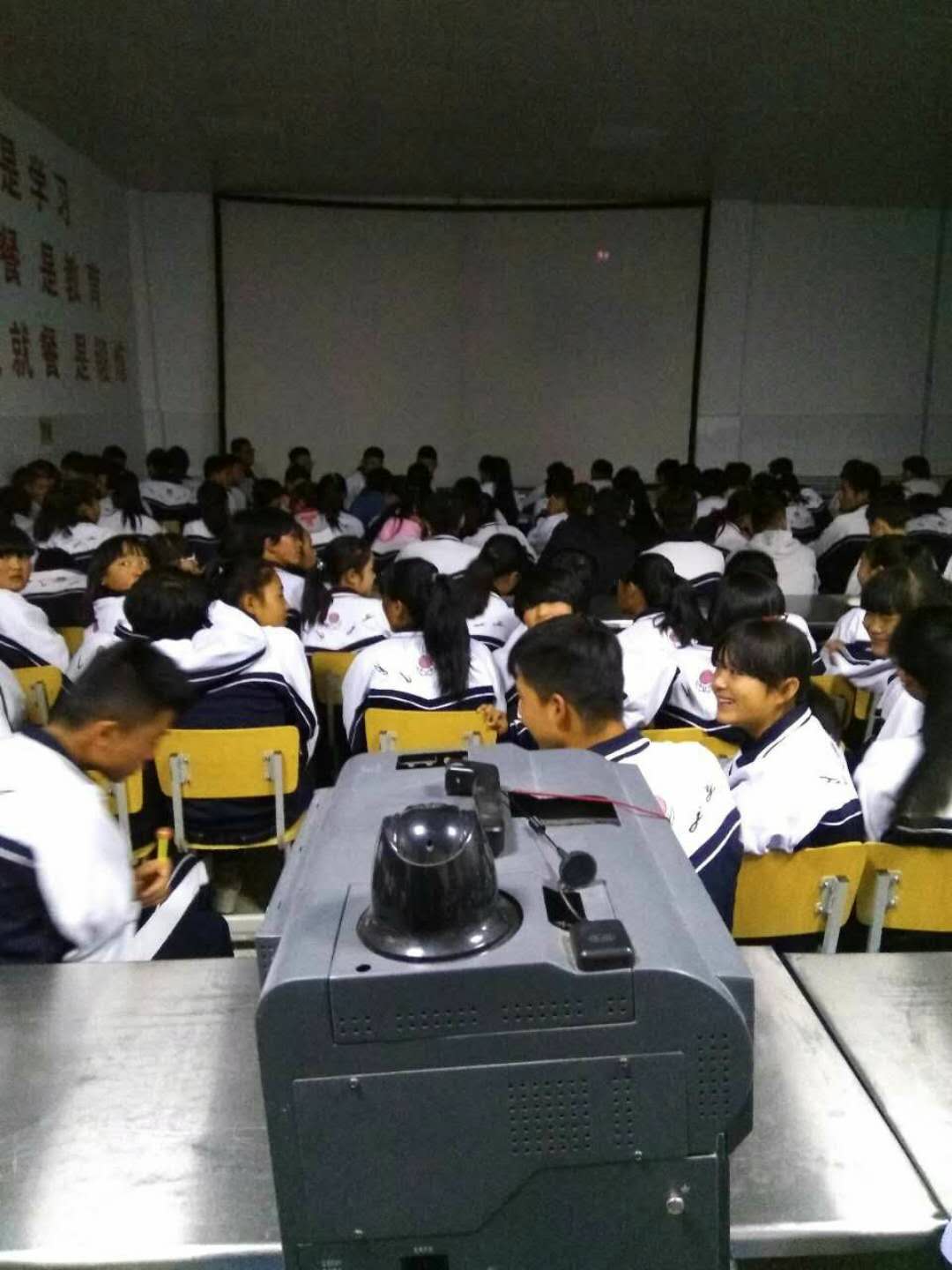 2017年10月17日,甘肅飛天農(nóng)村數(shù)字電影院線第一工作站在古浪縣職教中心放映公益電影,全校師生共同觀看了電影《血樣年華》《回歸一警惕邪教侵害》。