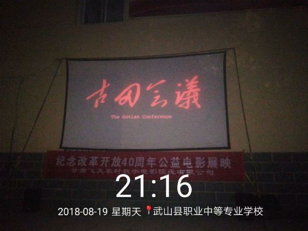 為加強(qiáng)學(xué)生愛國主義教育,培育和踐行社會主義核心價值觀,拓寬育人渠道,近日受武山縣職業(yè)中等專業(yè)學(xué)校邀請,甘肅飛天農(nóng)村數(shù)字電影院線有限公司第六工作站積極協(xié)調(diào)放映員在武山縣職業(yè)中等專業(yè)學(xué)校進(jìn)行了愛國主義電影專場放映。