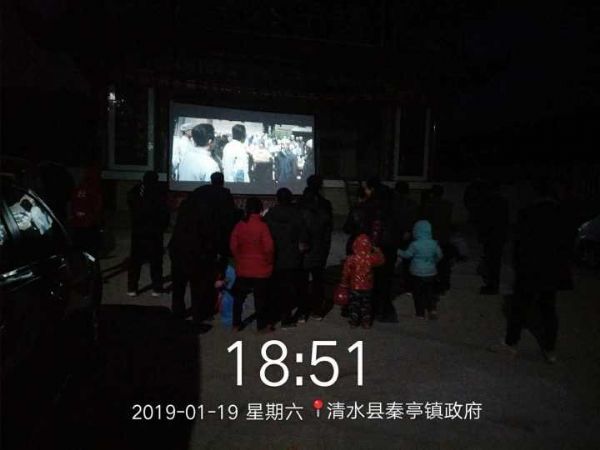 為響應(yīng)中宣部、省委宣傳部關(guān)于做好“我的中國夢-文化進(jìn)萬家”的工作要求,19日,由天水市清水縣委宣傳部、文明辦、文廣局、縣委黨校、文化館、農(nóng)業(yè)局、縣醫(yī)院、中醫(yī)院、婦保站、文聯(lián)等單位組織開展的2019年文化、科技、衛(wèi)生“三下鄉(xiāng)”活動(dòng)走進(jìn)清水縣秦亭鎮(zhèn)。農(nóng)村電影作為文化的一部分,也為此次活動(dòng)增添了濃墨重彩的一筆。